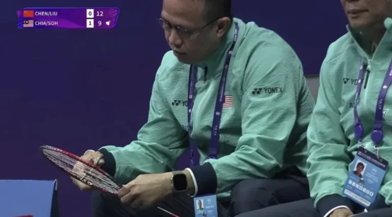Di sebalik kejayaan itu, ada satu momen menarik berlaku apabila Pengarah Kejurulatihan Akademi Badminton Malaysia (ABM), Rexy Mainaky, yang duduk di sebelah ketua jurulatih bahagian beregu lelaki, Herry Iman Pierngadi, kelihatan menolong Aaron menggunting tali raketnya yang sudah putus.