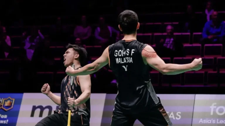 Beregu lelaki professional negara, Goh Sze Fei-Nur Izzuddin Rumsani, menewaskan rakan senegara, Mohd Azriyn Ayub-Tan Wee Kiong, menerusi aksi rubber set 21-14, 16-21, 21-14, dalam Kejohanan Badminton Terbuka Indonesia, di Istora Senayan, Jakarta.